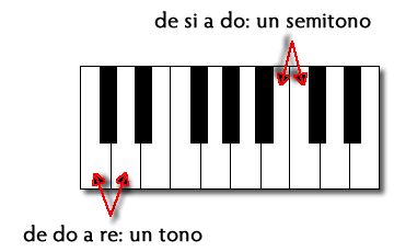 De cualquier teclas del piano a la siguiente tenemos la distancia de un semitono:
