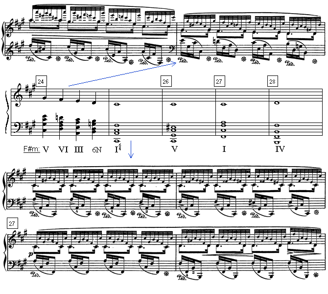 Note el uso del acorde de sexta napolitana en el compases 24: