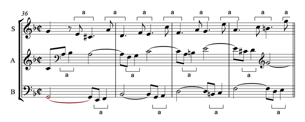 Comienza el alto con el sujeto (note la constante presencia de los motivos a - d):